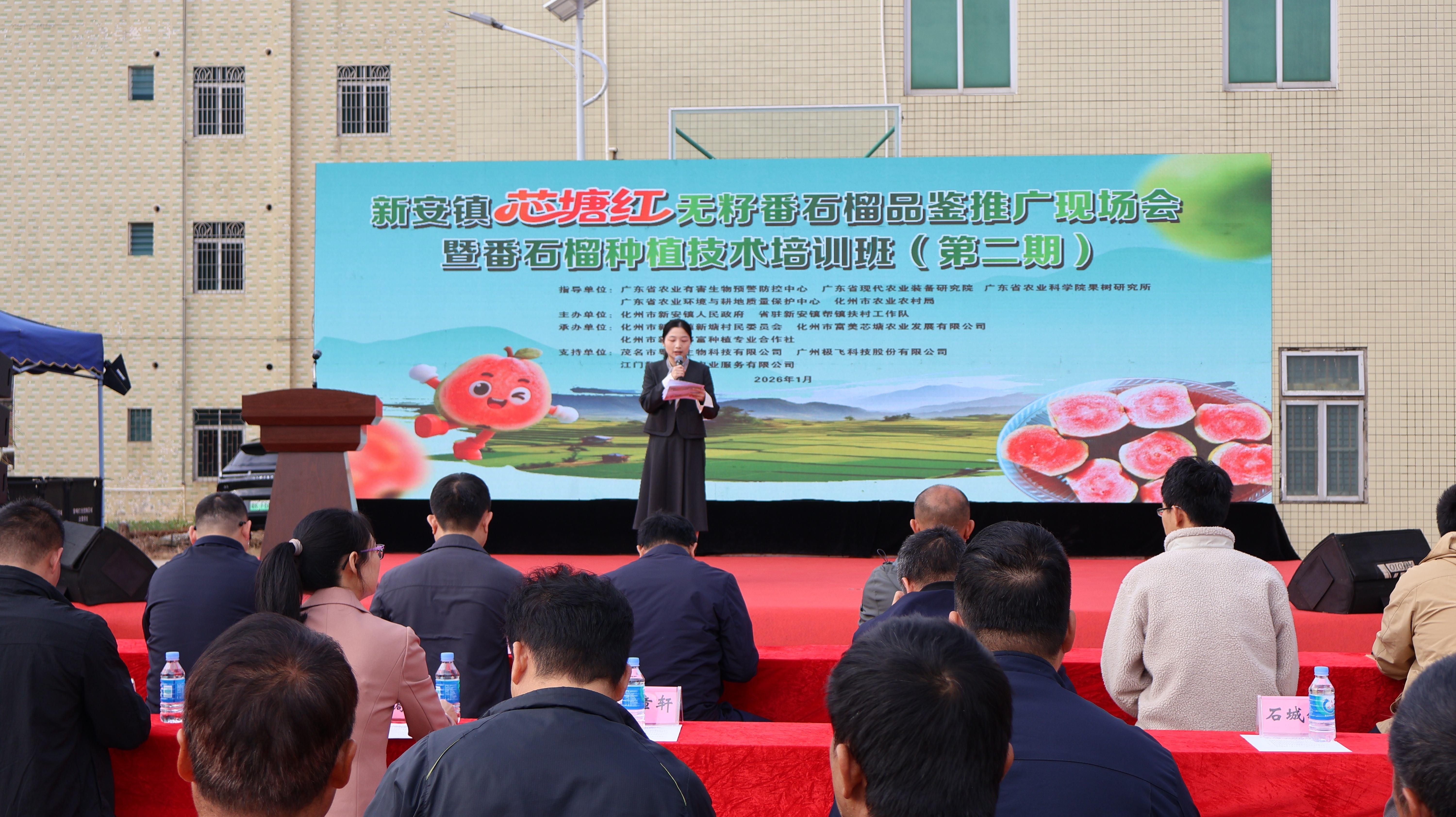 岁末年初,硕果飘香!1月20日上午,“芯塘红”无籽番石榴品鉴推广现场会暨番石榴种植技术培训班(第二期)在化州市新安镇新塘村委会蓝埇村成功举办。省农科院、科学院专家,市镇相关领导,省驻镇帮镇扶村工作队,化州各镇街及廉江河唇、石城、良垌等镇代表,企业代表及种植大户等230余人齐聚现场,共话产业发展、共学种植技术、共享丰收喜悦,现场洋溢着热烈浓厚的交流氛围。