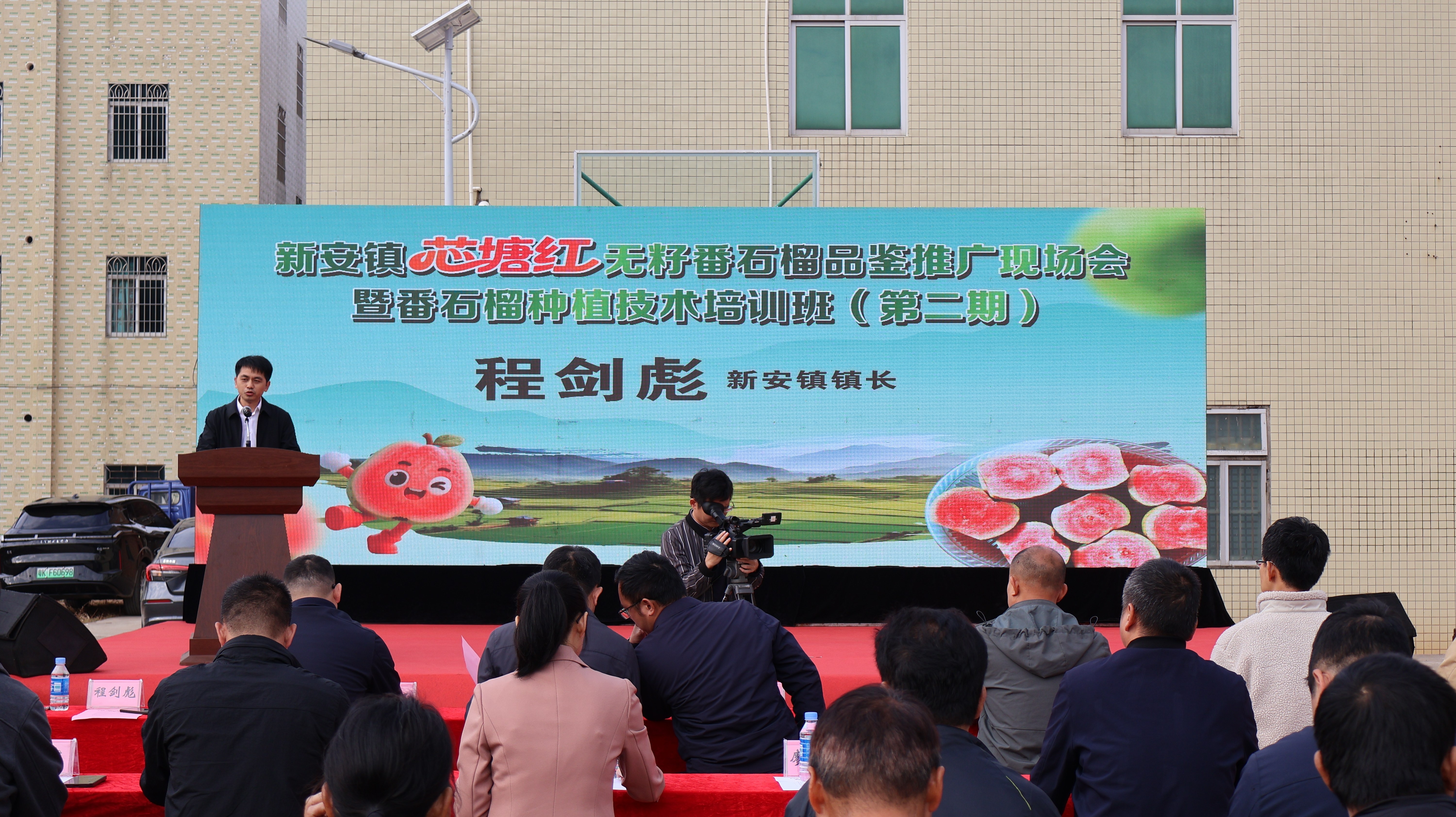 活动伊始,新安镇政府主要领导在致辞中表示,新安镇依托得天独厚的自然条件,在多方支持下培育出“芯塘红”无籽番石榴,本次活动既是成果展示,也是技术交流与市场对接的平台,助力番石榴产业高质量发展,为乡村振兴注入强劲动力。